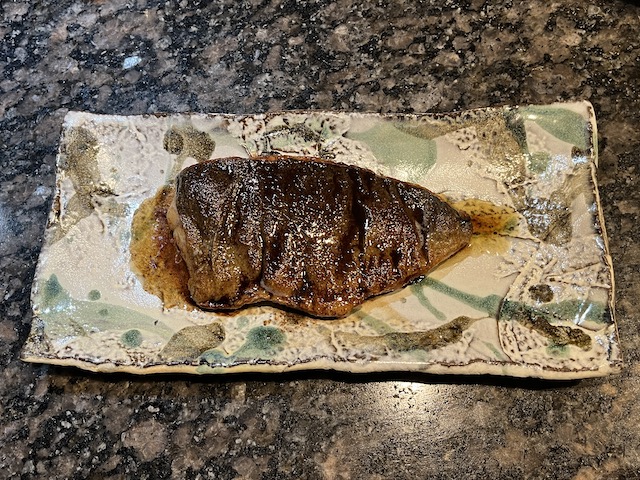 きめが細かく柔らかい旨味の強い白身はバター醤油と良い相性です。加えて、パリッと焼いた皮目もしっとりとした白身に香ばしさと食感のアクセントを与えとても美味でした。