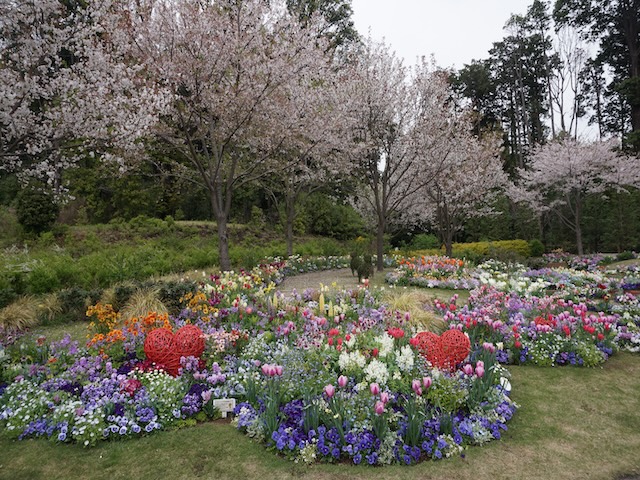 約10.000㎡の大花壇、チューリップ、パンジー、ビオラ、ネモフィラなど約30万本の花々と、 さくらや里山の新緑を楽しめます。交通案内 JR横浜線中山駅・地下鉄中山駅・駅相鉄線鶴ヶ峰駅より「よこはま動物園行き」のバスで約25分ほど。「よこはま動物園」より里山ガーデンへ無料シャトルバス運行してます。