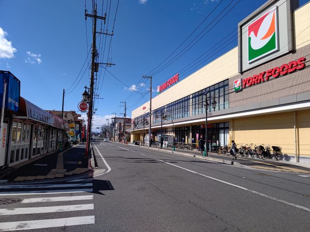 商店等の建ち並ぶ東口のメインストリートは国道467号線に繋がります。