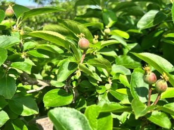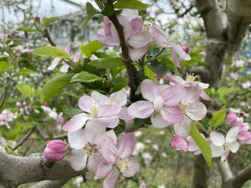 春に咲いたきれいな花は一つ一つが実になりますが、摘果作業で育てる実だけを残していきます