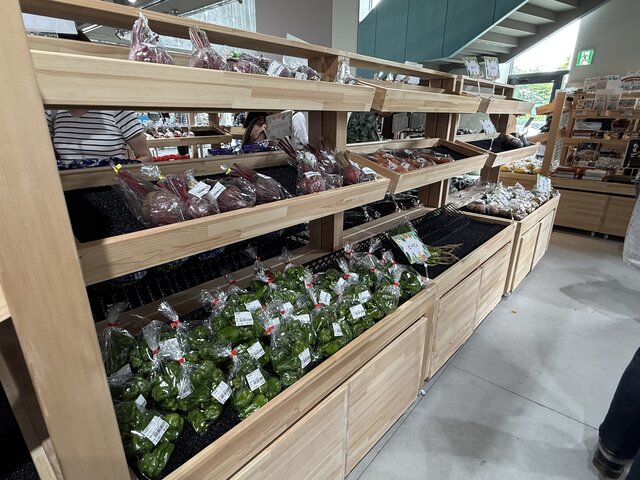 駐車場から中に入ると、まず目につくのは湘南の野菜コーナー。緑、赤、黄色、土色と色とりどりの取れたて野菜が楽しめます。