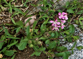 シロバナマンテマとマンテマは、いずれもヨーロッパ原産の帰化植物で草姿がよく似ています。いずれも海岸や野原などに野生化し、高さは20~30㌢、葉は対生して下部の葉はへら形で上部の葉は倒披針形で先端はとがります。両者の手っ取り早い見分け方は花弁にあります。前者の花弁は白または薄いピンク色、後者のマンテマの花弁は白色ですが、その舷部の中央に濃紅色の大きな斑点があります。