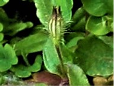 萼筒は狭卵形で長さは約8㍉で、赤褐色の10脈があります。花が終わると萼筒が膨らみ、脈上に長い開出毛や腺毛が見られ、萼筒の先端に2㍉ぐらいの細い5歯がつきます。果実は萼に包まれた蒴果で、熟すと6裂して黒色の種子をだします。和名の由来は、マンテマの仲間で白花をつけることから「シロバナマンテマ」に。