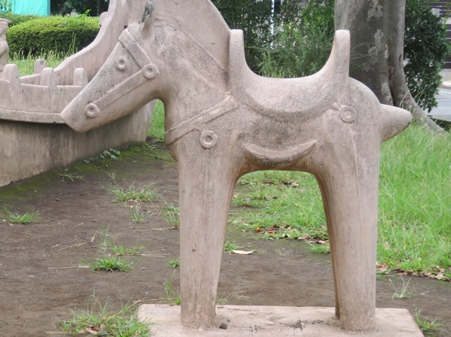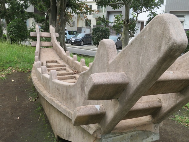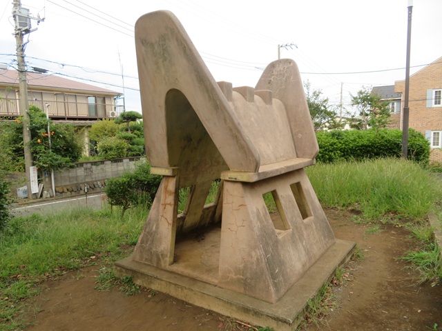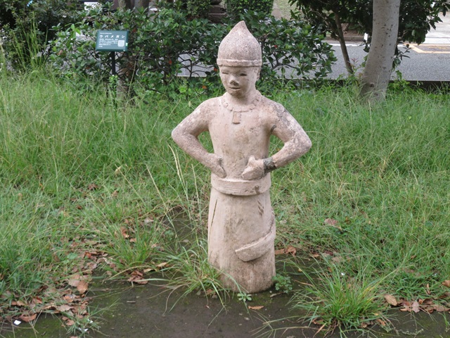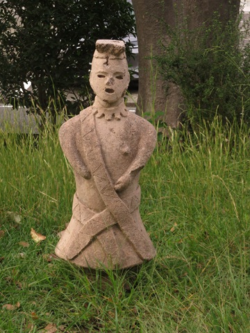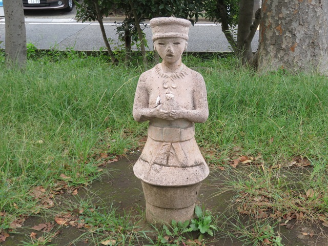 湘南台公園の一角に9基のハニワが並んでいます。すべてコンクリートの造形で、高さは、一部動物のハニワを除き、1mを超えます。家、船、馬型、武人、巫女、男子、女子、動物など、古墳時代の埋葬品である埴輪が、現代のハニワとして子供たちの遊び場に蘇っています。公園の向いには湘南台文化センターこども館もあり、このハニワコーナーは、歴史を感じながら子供たちとの楽しい時間が過ごせる一角となっています。