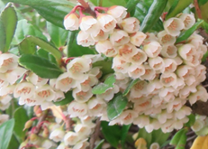江の島の道路わきや広場の片隅には、ハマヒサカキだけではなく、常緑低木のシャリンバイやトベラなども植栽されています。いずれも常緑の低木ですが、葉の形状や花の咲く時期が異なります。シャリンバイの花期は4~5月で梅に似た花を開き、トベラの花期は4~6月で白い花を多数つけます。