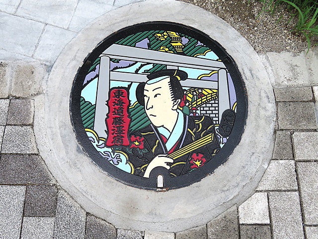 小栗判官を描いた浮世絵をモチーフとしたデザインのマンホール ... -