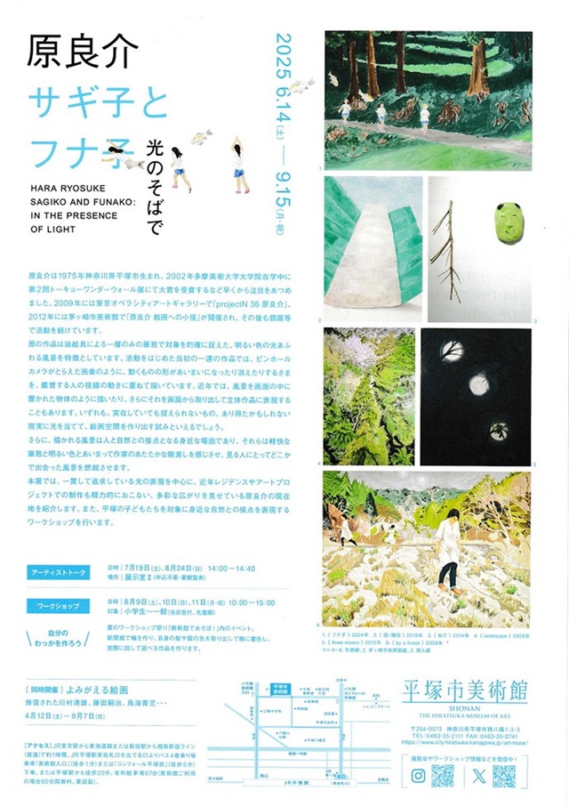 ◆展示概要:原良介は1975年平塚生まれ。油絵具による一層のみの筆致で対象を的確に捉えた、明るい色の光あふれる風景を特徴としています。本展では、一貫して追求している光の表現を中心に、近年レジデンスやアートプロジェクトでの制作も精力的に行い、多彩な広がりを見せている原良介の現在地点までを紹介します。平塚の子どもたちを対象に身近な自然との接点を表現するワークショップを行います。