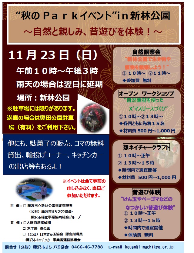 “秋のParkイベント” In 新林公園 ~自然と親しみ、昔遊びを体験!~ 11/23 森林公園
