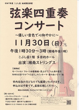 令和7年度 こぶし荘 地域開放事業「弦楽四重奏コンサート」を開催します。