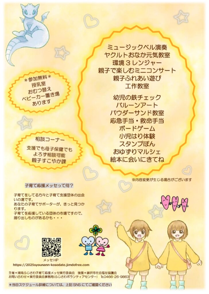詳細は2025湘南ふじさわ子育て応援メッセのホームページへ。