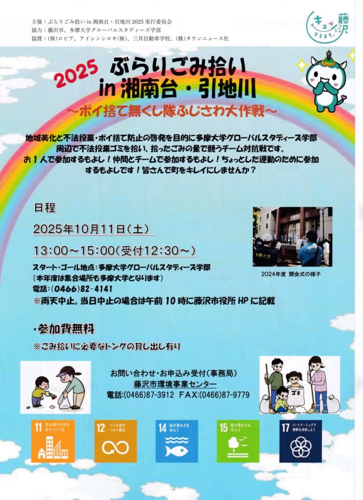 ◆主 催:ぶらりごみ拾いin湘南台・引地川2025実行委員会