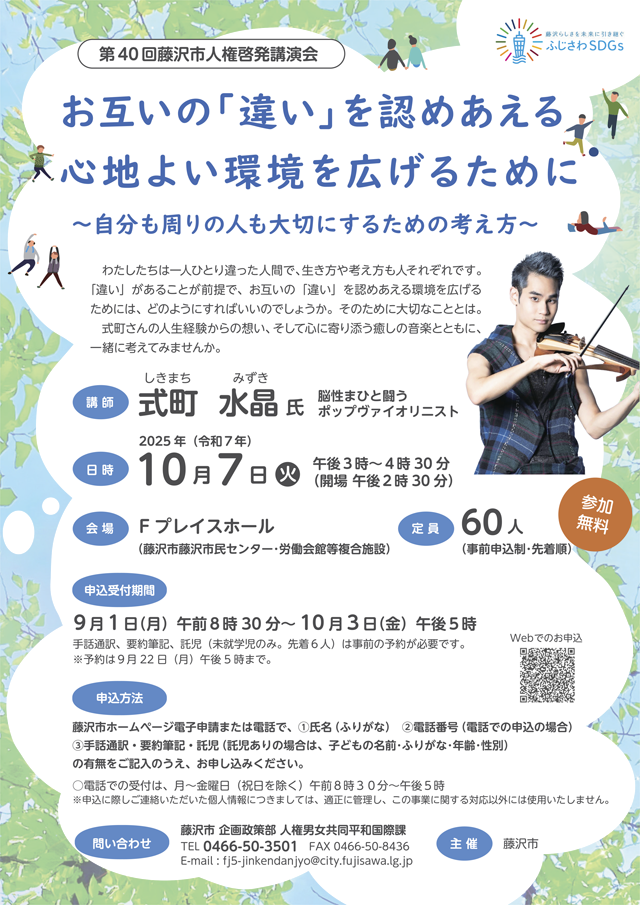 第40回藤沢市人権啓発講演会「お互いの「違い」を認めあえる、心地よい環境を広げるために」